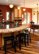 The home hosts FSC framing lumber, radiant heat, wood flooring milled from a fallen walnut tree, reclaimed fir flooring for trim, arches and great natural light with Loewen windows. The garage doors were salvaged by Scot Adam, the hickory and concrete counters fabricated by Scot as well. I remember one beautiful spring day early in the framing phase, Scot and i were on site and found ourselves in the migratory path of thousands of butterflies. This house was a joy to build, with Scot and Tammy very involved in the process, constantly "value engineering"(figuring out ways to save money) and collaborating on enhancing it's beauty. And I am happy to say the project came in slightly under the estimated bid.