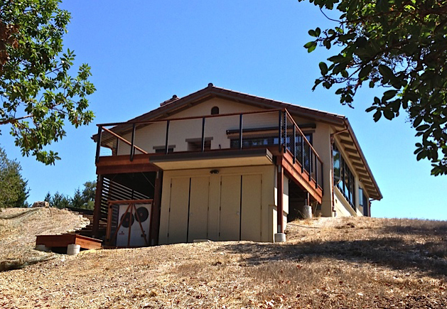 ZNE- Zero Energy design and build of new home, garage and site development for 17 acre Bonny Doon parcel. 12K Solar array with grid tie and battery back up supplies this all electric development. Owners wanted a small home with a big view of the north coast rolling hills and ocean. Self sufficient, long lasting and low maintenance were the goals. Owner can monitor and control many functions of heating, cooling, venting, light and sound control, etc. from his smart phone. Unencumbered. A place of meditative light and beauty.