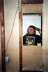 Joanne smiles through the missing medicine cabinet